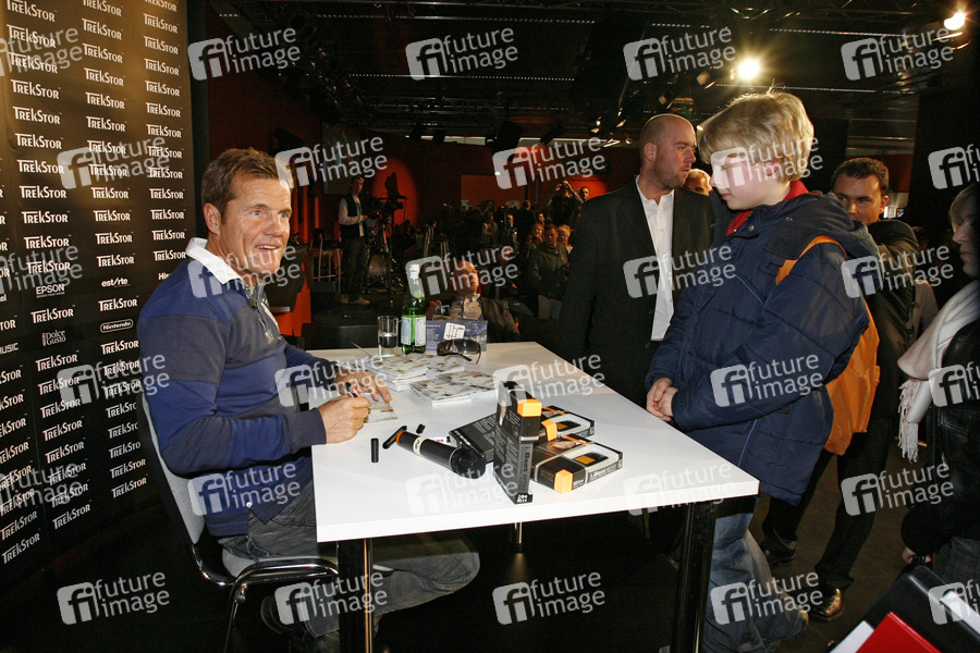 Auf der CeBIT 2008 (Centrum der Büro- und Informationstechnik), der weltgrößten Messe für Informations- und Computertechnik auf dem Messegelände in Hannover. Dieter Bohlen wird als neues Werbegesicht von TrekStor vorgestellt.