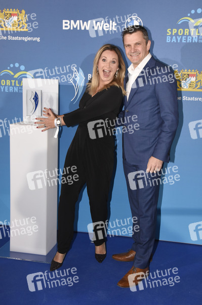 Eva Grünbauer mit Ehemann Richard George bei der 20. Verleihung des Bayerischen Sportpreises 2021 in der BMW-Welt München. München, 06.11.2021