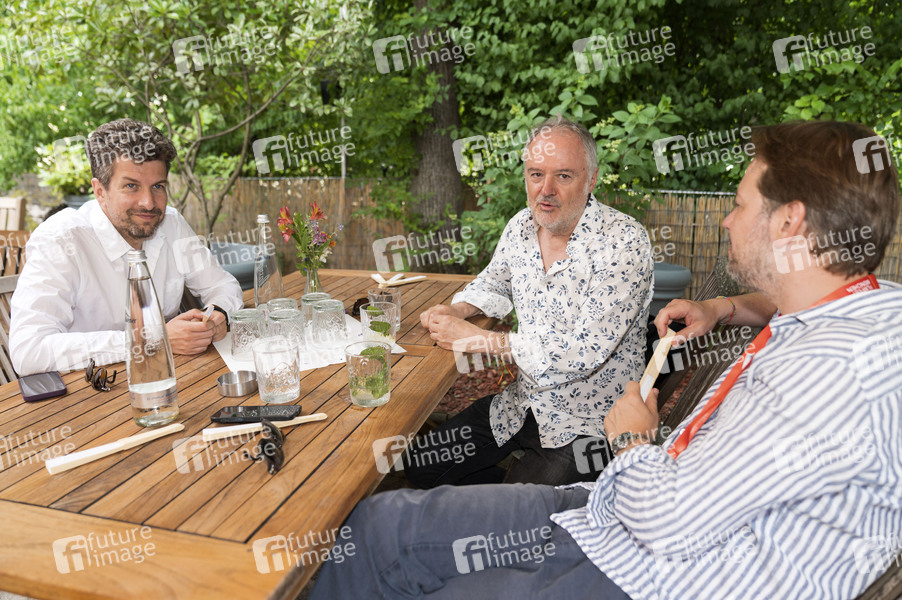 Tobias Walker, Stefan Haupt und Philipp Worm beim Empfang des FilmFernsehFonds Bayern beim 42. Filmfest München 2025 im Café Reitschule. München, 03.07.2025