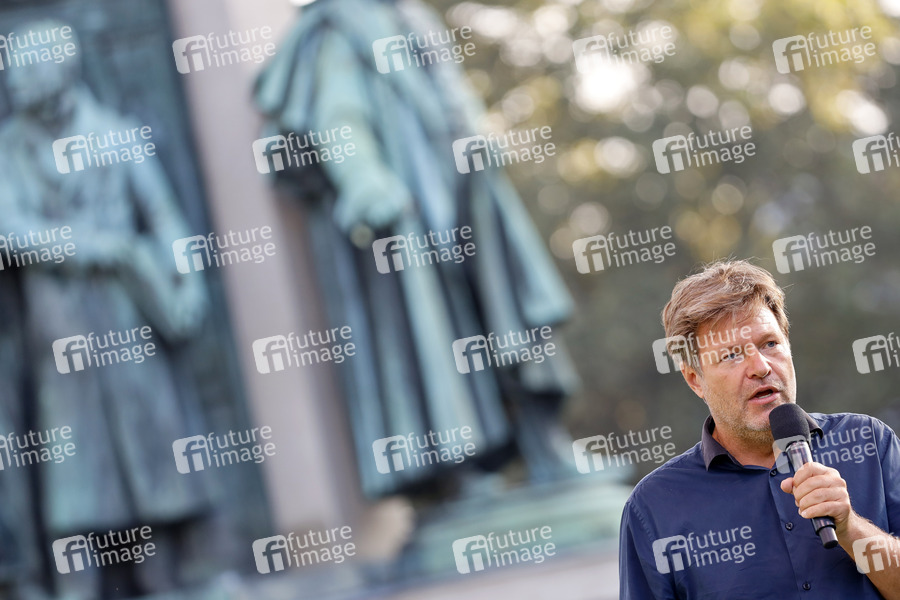 Robert Habeck redet bei einem Wahlkampf-Auftritt für die Kölner Grünen auf dem Heumarkt. Köln, 22.09.2021