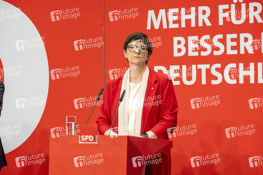 Saskia Esken bei einer Pressekonferenz der SPD zu den Bundestagswahlen im Atrium des Willy-Brandt-Hauses. Berlin,24.02.2025