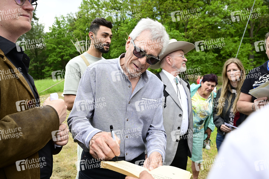 Gojko Mitic bei der offiziellen Einweihung einer Sandstein-Stele in der Nähe des Originaldrehortes des Filmes 'Die Söhne der großen Bärin' im Kurort Rathen. Rathen, 19.05.2024