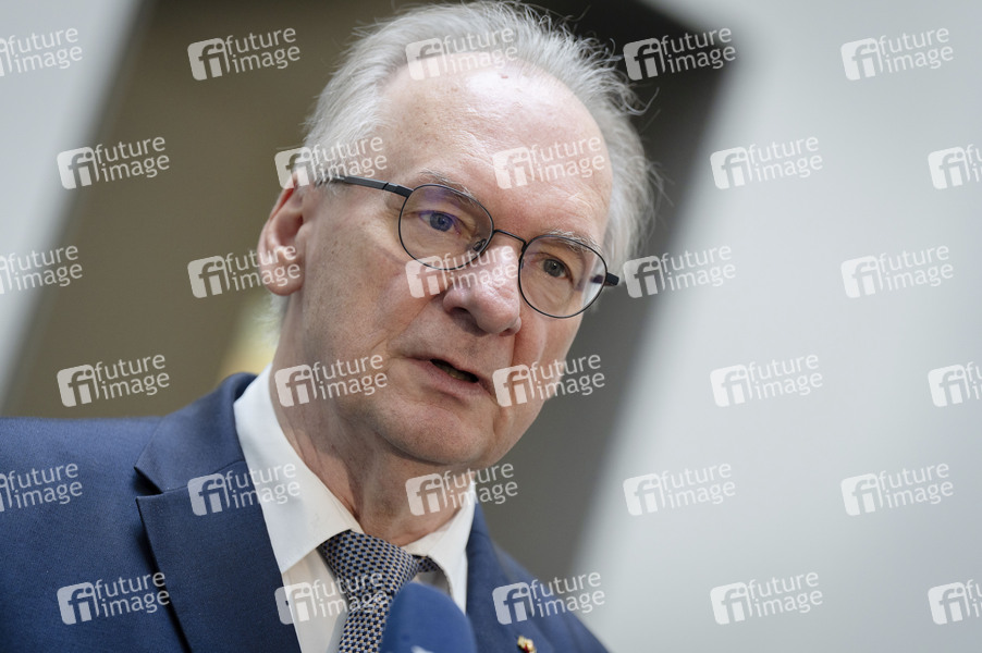Reiner Haseloff beim Pressestatement am Rande der 1057. Sitzung des Bundesrates im Plenarsaal des Preußischen Herrenhauses. Berlin, 26.09.2025