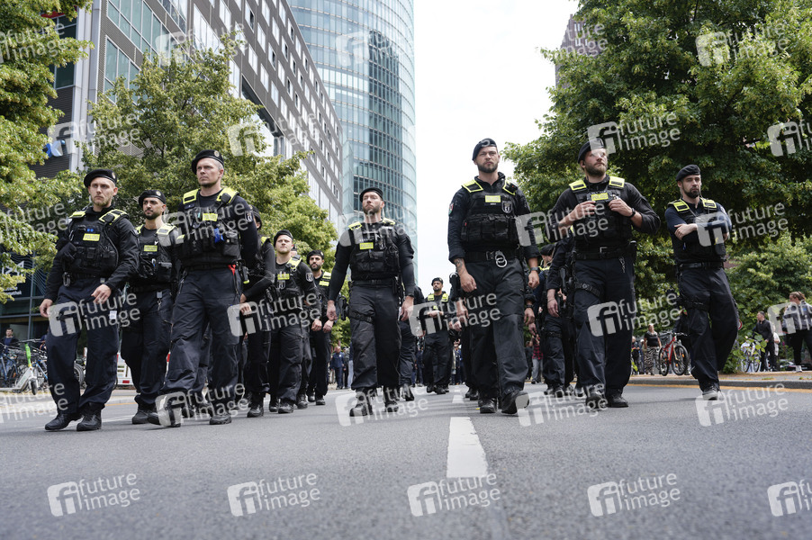 Polizisten in Uniform beim Schweigemarsch für den ermordeten Mannheimer Polizisten Rouven L. vom Potsdamer Platz zur Landesvertretung Baden-Württemberg. Berlin, 07.06.2024