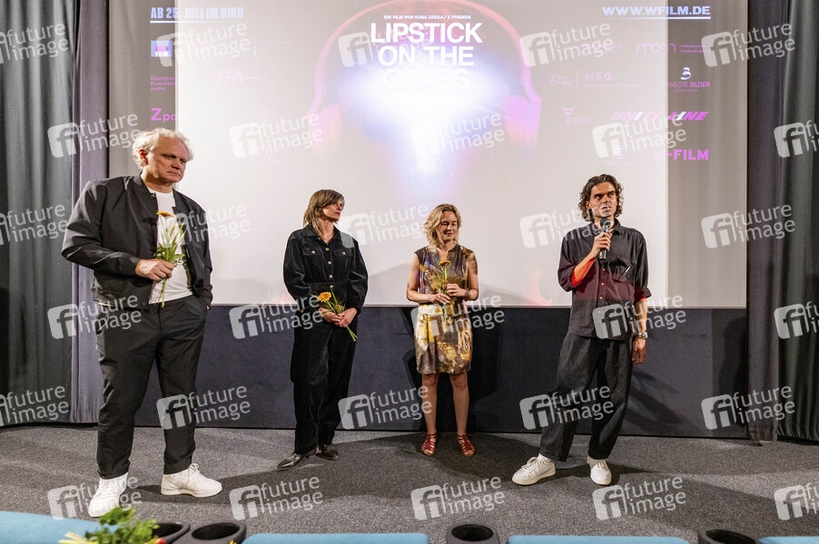 Arek Gielnik, Lena Lauzemis, Agnieszka Podsiadlik und Kuba Czekaj bei der Premiere des Kinofilms 'Lipstick on the Glass' in den Passage Kinos. Leipzig, 25.07.2024