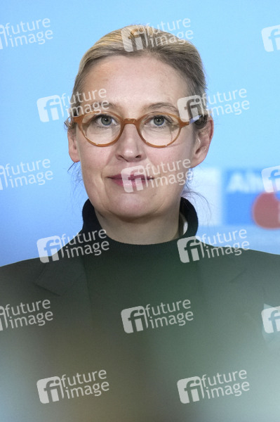 Alice Weidel beim Pressestatement zur Fraktionssitzung der AfD-Bundestagsfraktion im Reichstagsgebäude. Berlin, 17.12.2024