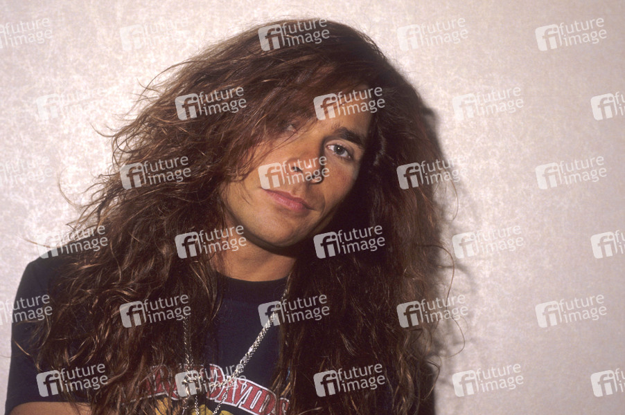 Mike Tramp von White Lion bei einem Photoshooting im Columbia Hotel. London, 03.02.1991