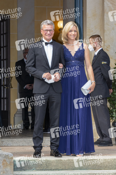 Bernd Sibler mti Ehefrau Michaela Sibler bei der Eröffnung der Richard-Wagner-Festspiele 2021 mit der Premiere von Richard Wagners 'Der fliegende Holländer' im Bayreuther Festspielhaus. Bayreuth, 25.07.2021