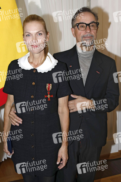 Anna Loos und Jan Josef Liefers bei der Verleihung des Verdienstkreuzes am Bande der Bundesrepublik Deutschland an Anna Loos im Schloss Bellevue. Berlin, 01.10.2025