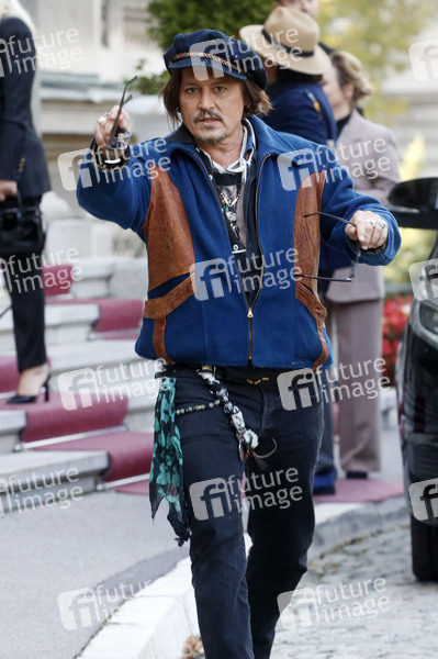 Johnny Depp nach dem Empfang bei Präsident Aleksandar Vucic anlässlich der ersten in Serbien produzierten Zeichentrickserie 'Puffins' im Gebäude des Generalsekretariats des Präsidenten der Republik Serbien. Belgrad, 19.10.2021