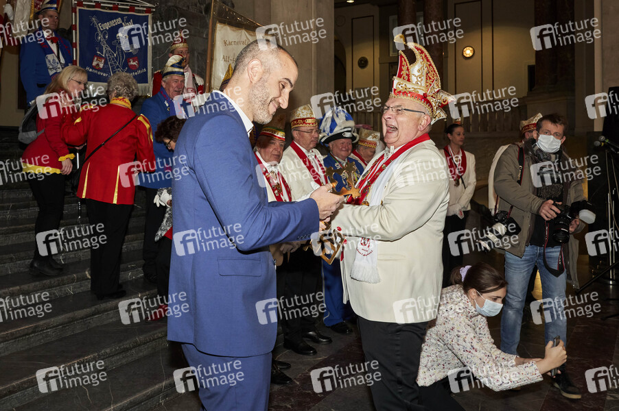 Belit Onay bei der Stürmung des Neuen Rathauses durch die Hannoveraner Karnevalsvereine und der Proklamation der Prinzenpaare 2021 mit Übergabe des Stadtschlüssels. Hannover, 13.11.2021