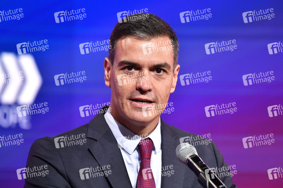 Pedro Sanchez beim Pressestatement zum Auftakt des Europa-Wochenendes der SPE-Konferenz unter dem Motto 'Mit Mut. Für Europa' in der Station Berlin. Berlin, 25.06.2021