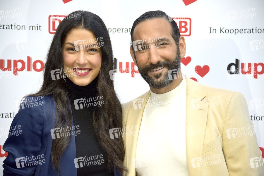 Rebecca Mir mit Lebenspartner Massimo Sinato beim duplo x Deutsche Bahn Valentinstagsevent auf dem Hauptbahnhof. Frankfurt am Main, 14.02.2020