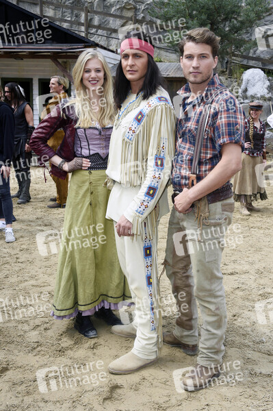Larissa Marolt, Alexander Klaws und Raul Richter beim Pressetermin der Karl-May-Spiele 2019 mit Szenen aus 'Unter Geiern - Der Sohn des Bärenjägers' im Freilichttheater am Kalkberg. Bad Segeberg, 21.06.2019