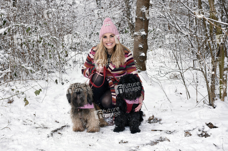 Alessandra Geissel beim Winterspaziergang mit ihren Hunden Jessy und Kira im Truderinger Wald. München, 06.01.2021