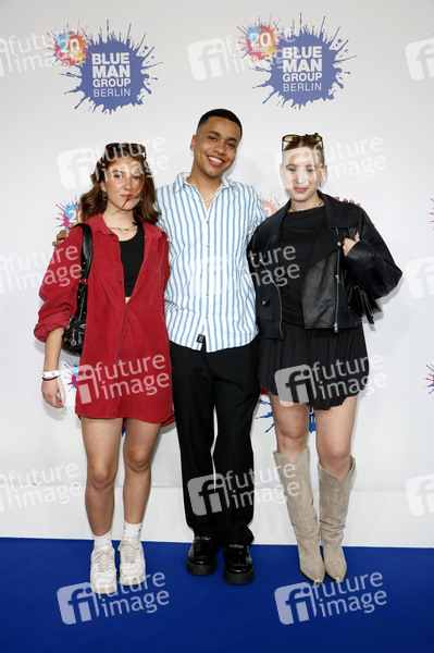Frida Lucia Schenderlein, Jerome Weinert und Paula Senfkorn beim 20 Jahre Blue Man Group Event im Stage Bluemax Theater. Berlin, 16.05.2024