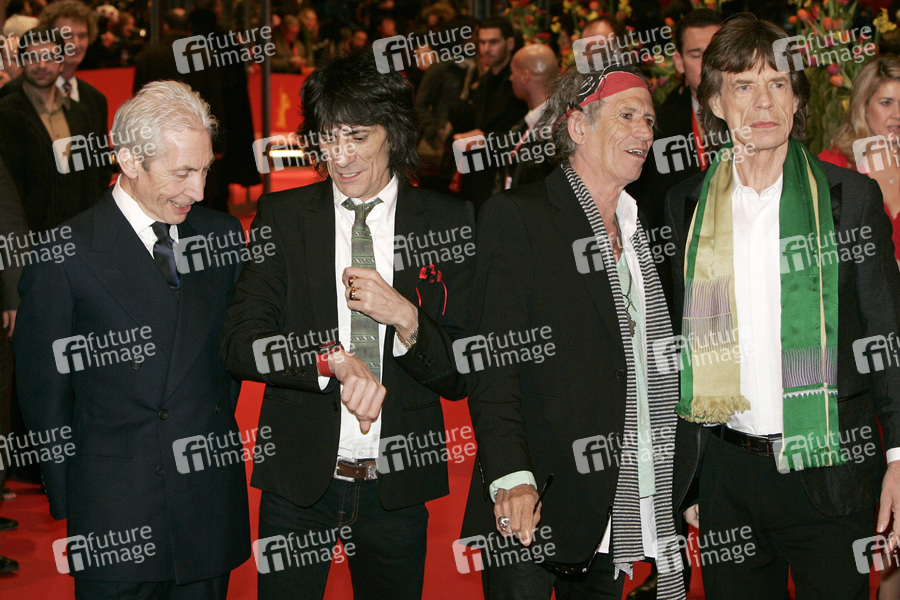 Charlie Watts, Ron Wood, Keith Richards und Mick Jagger von The Rolling Stones bei der Festivaleröffnung mit der Premiere des Kinofilms 'Shine a Light' auf der Berlinale 2008 / 58. Internationale Filmfestspiele Berlin im Festivalpalat. Berlin, 07.02.2008