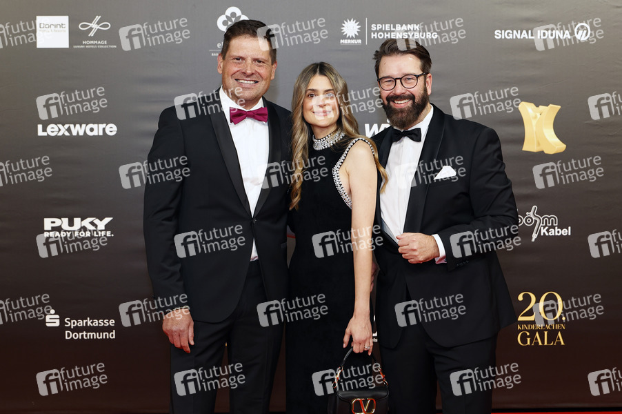Jan Ullrich, Elizabeth Napoles und Marc Peine bei der 20. Kinderlachen-Gala 2024 in der Messe Dortmund. Dortmund, 30.11.2024