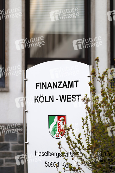 Schild am Finanzamt. Köln, 25.04.2020