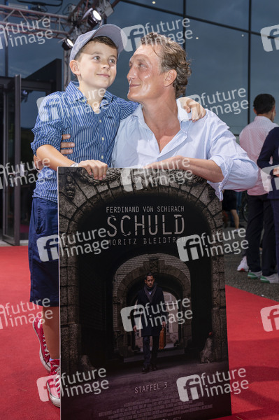 Oliver Masucci mit Sohn Vito Masucci bei der Premiere der 3. Staffel der ZDF TV-Serie 'Schuld' auf dem 37. Filmfest München 2019 in der Hochschule für Film und Fernsehen. München, 01.07.2019