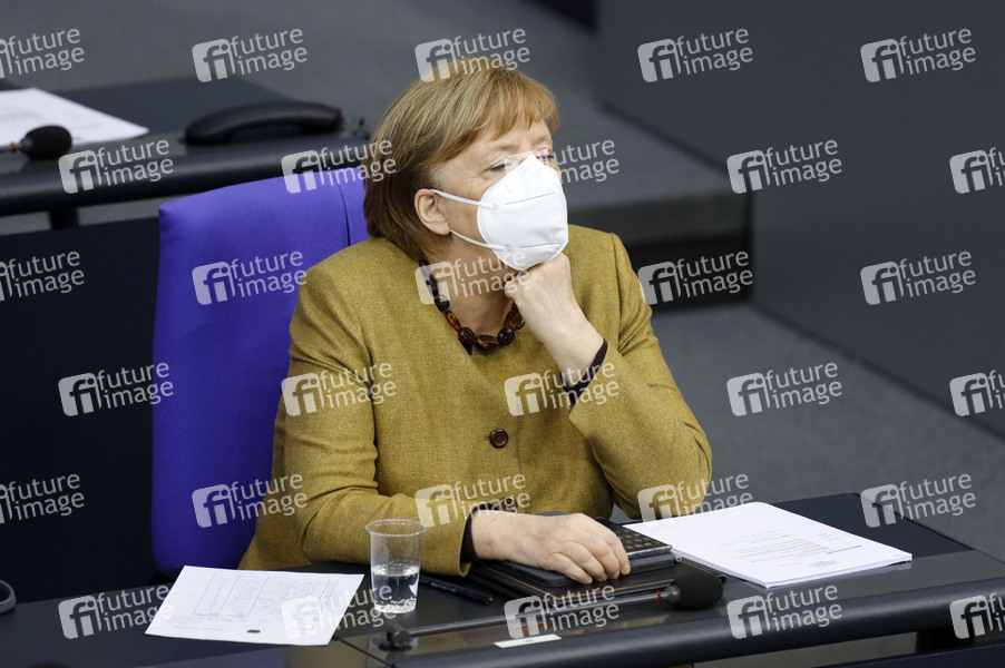 Angela Merkel in der 209. Sitzung des Deutschen Bundestages im Reichstagsgebäude. Berlin, 11.02.2021