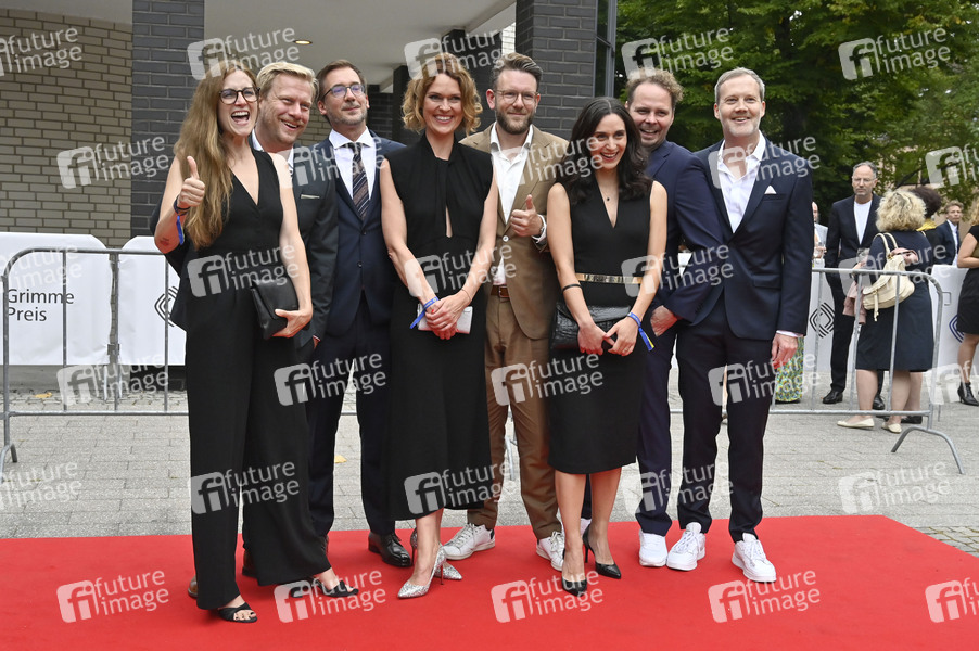 Thomas Schmitt und Jakob Lundt mit Team bei der 58. Verleihung des Grimme Preises 2022 im Theater der Stadt Marl. Marl, 26.08.2022
