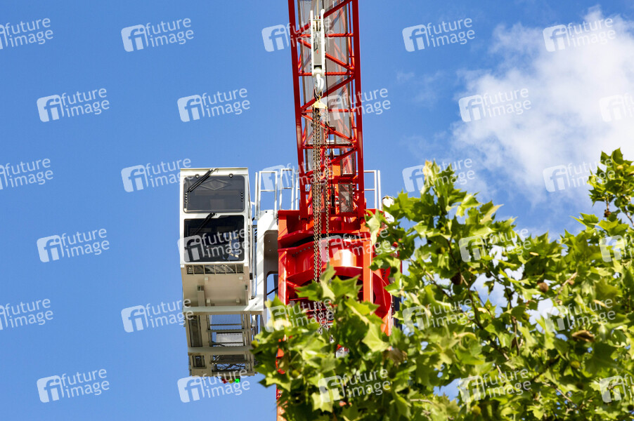 Kran, Turmkran, Turmkräne, Hebemaschine, Turmdrehkran, Obendreherkran, Krantechnik, Kranvermietung, Kranzubehör, Baukanhandel, Krananstrich, Kranfarbe, Baustelle, Hochbau, Hochbaukrane, Tiefbau, Fachwerkträger, Drehkranz, Vorderer Auslager, hinterer Ausleger, Katzausleger, Nadelausleger, Turmkrankonstruktion, Wolffkran, Baumaschinen, Baumaschienenhersteller, Kranhersteller, Turmspitze, Ballastgewicht, Gegenausleger, Traglast, Widerlager, Aufstellfläche, Bodenplatte, Betongewichte, Stahlrohrkonstruktion, Lastmoment, Krankomponenten, Fundamentanker, Turmabspannung, Innenkletterleiter, Kranfahrer, Kranführer, Krankanzel, Steuerkanzel, Wirtschaft, Bau, Symbolbild, Symbolfoto