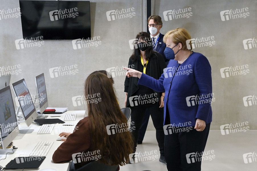 Angela Merkel beim Rundgang durch das TUMO Lernzentrum zur Förderung der digitalen Bildung von Jugendlichen in Berlin-Charlottenburg. Berlin, 22.11.2021