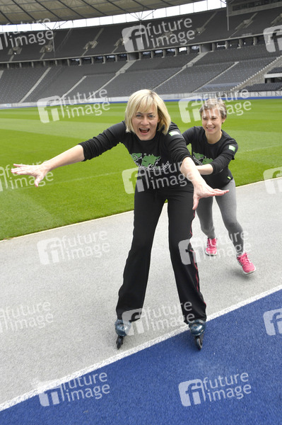 Gesine Cukrowski und Alina Levshin beim Fototermin zur sportichen '#WocheChallenge' im Olympiastation Berlin. Unter dem Motto 'Wir können was bewegen!' ruft die Welthungerhilfe zu dieser Challenge auf und bittet um Spenden für eine Welt ohne Hunger. Berlin, 09.10.2020