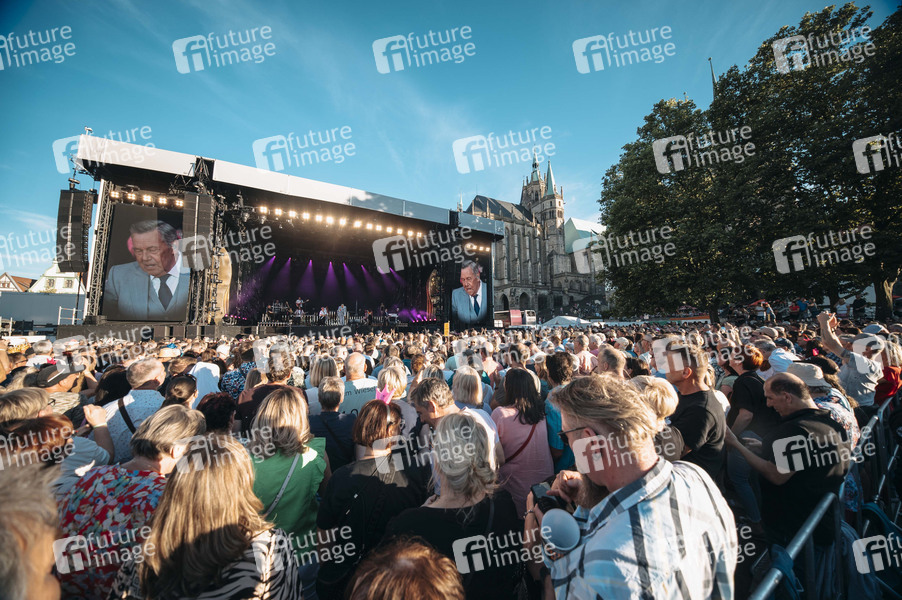 Publikum beim Konzert von Roland Kaiser zu seiner Tour '50 Jahre - 50 Hits - Die große Tournee zum 50. Bühnenjubiläum' auf dem Domplatz. Erfurt, 28.06.2024