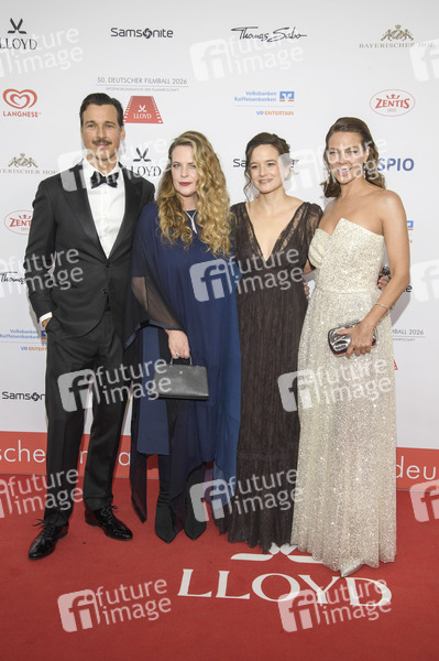 Florian David Fitz, Diana Amft, Lena Schömann und Jessica Schwarz beim 50. Deutschen Filmball 2026 im Hotel Bayerischer Hof. München, 24.01.2026