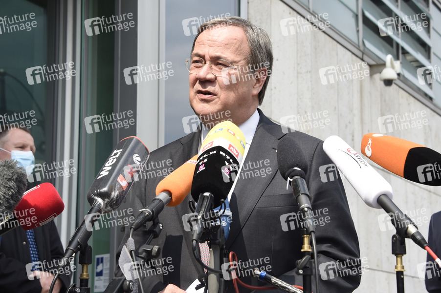 Armin Laschet bei einem Pressestatement zur Kanzlerkandidatur von Annalena Baerbock vor dem Konrad-Adenauer-Haus. Berlin, 19.04.2021