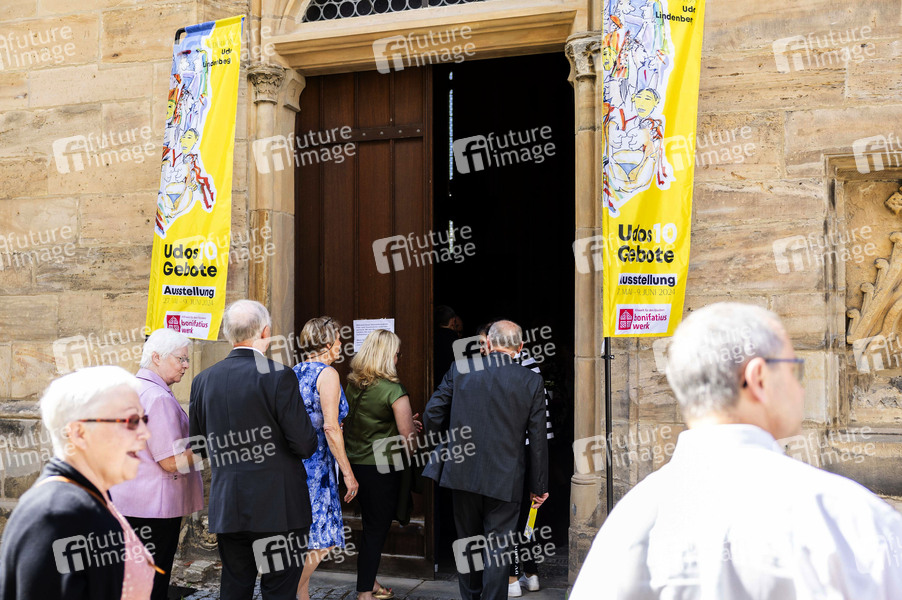 Eröffnung der Ausstellung 'Udos 10 Gebote' mit 24 Gemälden zu den biblischen 10 Geboten von Udo Lindenberg in der Severikirche. Erfurt, 26.05.2024