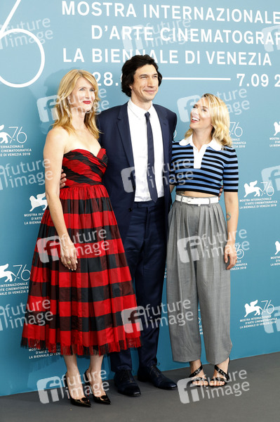 Laura Dern, Adam Driver und Scarlett Johansson beim Photocall zu 'Marriage Story' auf der Biennale di Venezia 2019 / 76. Internationale Filmfestspiele von Venedig im Palazzo del Casino. Venedig, 29.08.2019