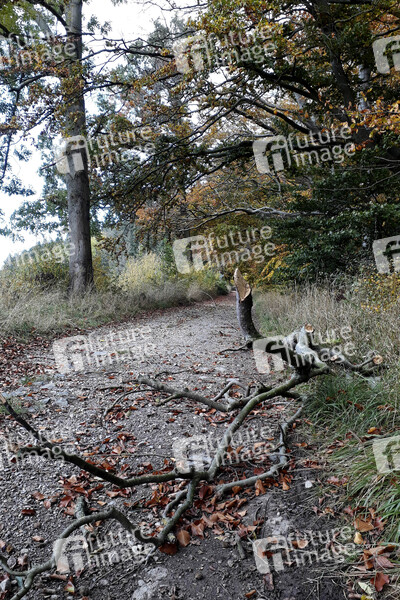 Waldsterben, Baumschäden, Forstarbeiten, Waldweg, Wald, Forst, Natur, Herbst, Herbstlaub, Waldarbeiten, Holz, Ast, Waldschäden, Symbolfoto, Symbolbild