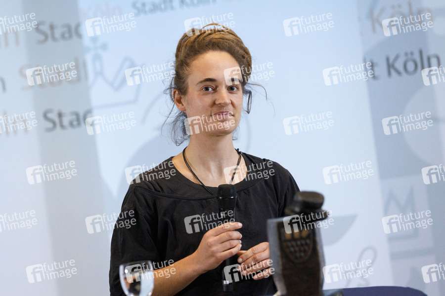 Carola Rackete erhält die mit 10.000 Euro dotierte Auszeichnung für ihr besonderes Engagement in der Flüchtlingshilfe bei der Verleihung des Karl-Küpper-Preises, der dieses Jahr zum 1. mal in Köln an Menschen vergeben wird, die sich für den Schutz der Demokratie und gegen Rassismus, Antisemitismus und jede Form der Diskriminierung engagieren, im Rathaus. Köln, 19.10.2020
