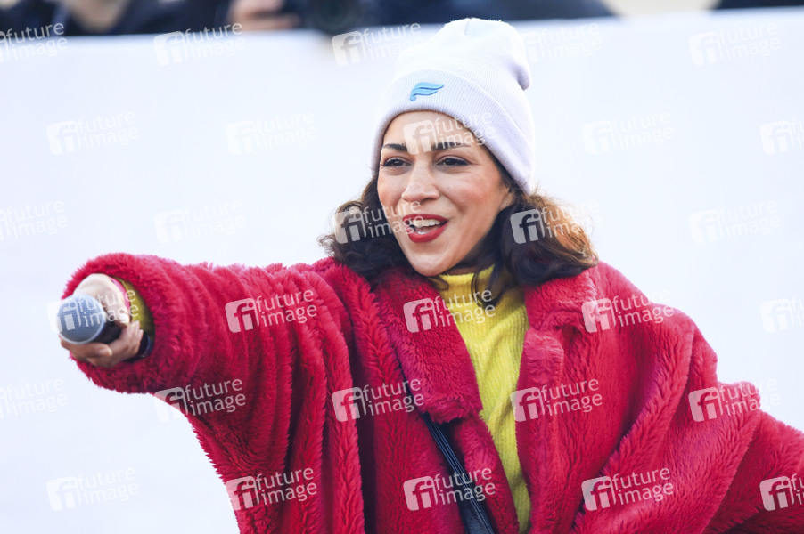 Nadja Benaissa bei der Kundgebung unter dem Motto 'Mutig. Menschlich. Miteinander. - Hand in Hand für unsere Demokratie' auf dem Bebelplatz. Berlin, 16.02.2025