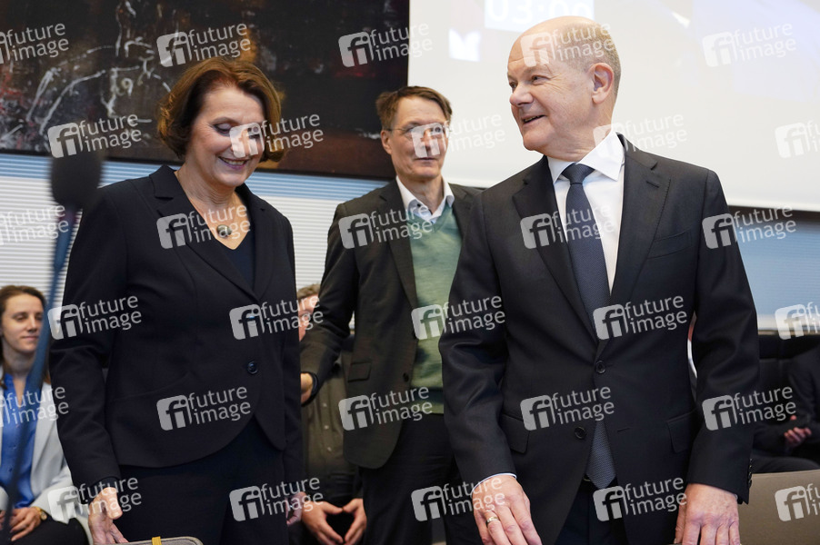 Britta Ernst, Karl Lauterbach und Olaf Scholz bei der Fraktionssitzung der SPD-Bundestagsfraktion im Reichstagsgebäude. Berlin, 16.12.2024