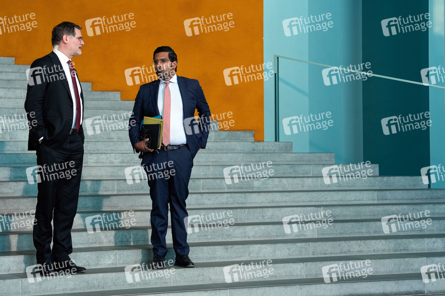 Wolfgang Schmidt mit seinem Büroleiter beim Empfang des Expertenrates Gesundheit und Resilienz im Bundeskanzleramt. Berlin, 18.03.2024