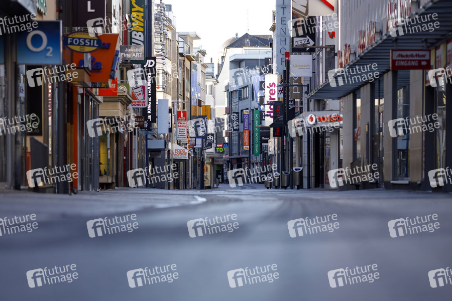 Die menschenleere Hohe Straße mit geschlossenen Läden während der Corona-Krise. Köln, 22.03.2020