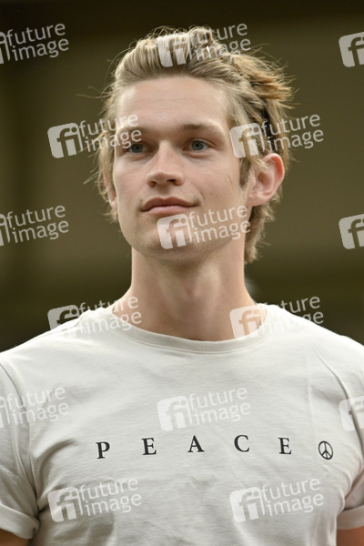 Damian Hardung beim Fototermin am Set der 2. Staffel der ARD TV-Serie 'Unsere wunderbaren Jahre' im Monforts Quartier. Mönchengladbach, 14.06.2022