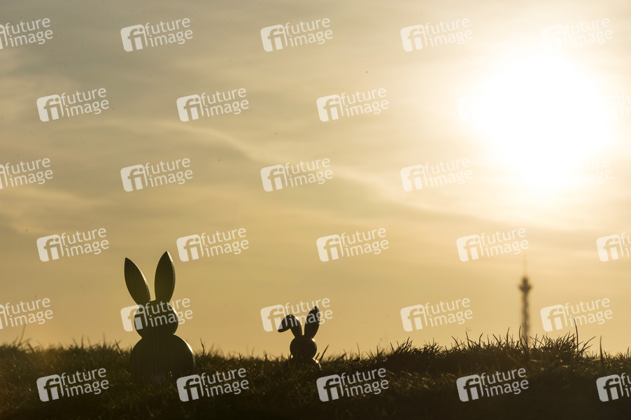 Osterhasen beim Sonnenaufgang am Ostersonntag. Berlin, 12.04.2020