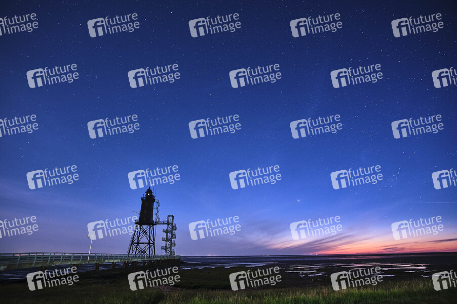 Eversand-Oberfeuer, Turm, Höhe 37.4 m, Gitterkonstruktion, runde Laterne, Sedhenswürdigkeit, Befeuerung, Schifffahrtszeichen, Positionsbestimmung, Nacht, Nachtaufnahme, Sternenhimmel