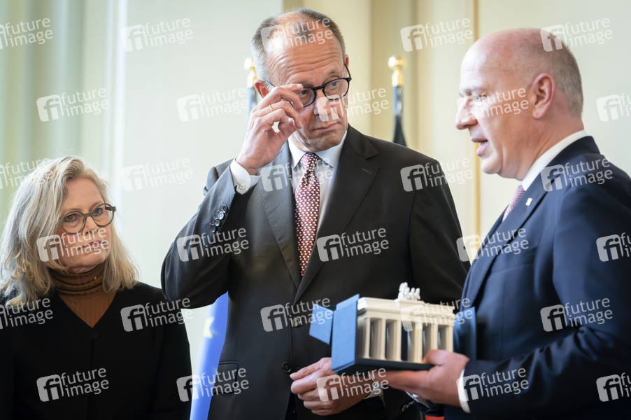 Friedrich Merz und Kai Wegner beim Antrittsbesuch des Bundeskanzlers im Roten Rathaus. Berlin, 03.12.2025