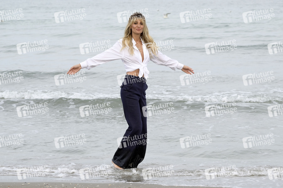 Sveva Alviti beim Photocall mit der Patin der Biennale di Venezia 2024 / 81. Internationale Filmfestspiele von Venedig am Strand vom Hotel Excelsior. Venedig, 27.07.2024