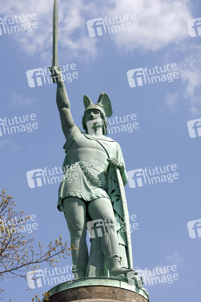 soll an den Cheruskerfürsten Arminius (Lateinisch, in deutsch: Hermann) erinnern, Gesanthöhe 53.46 m, Sandsteinunterbau 26.89m, Figur 26.57 m, besteht aus einer Eisenrohrkonstruktion mit Oberfläche aus Kupferplatten, Erbauer Ernst von Bandel, Baubeginn 1838, nach der Revolution von 1848 ruhte der Bau bis 1863, festliche Einweihung 1875