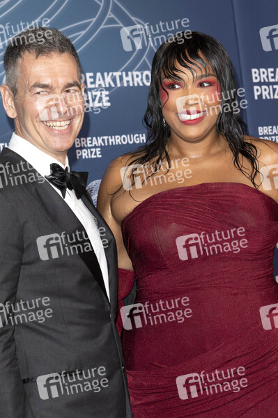 Robert Kyncl und Lizzo bei der 11. Verleihung des Breakthrough Prize für herausragende wissenschaftliche Arbeiten im Barker Hanger. Santa Monica, 05.04.2025