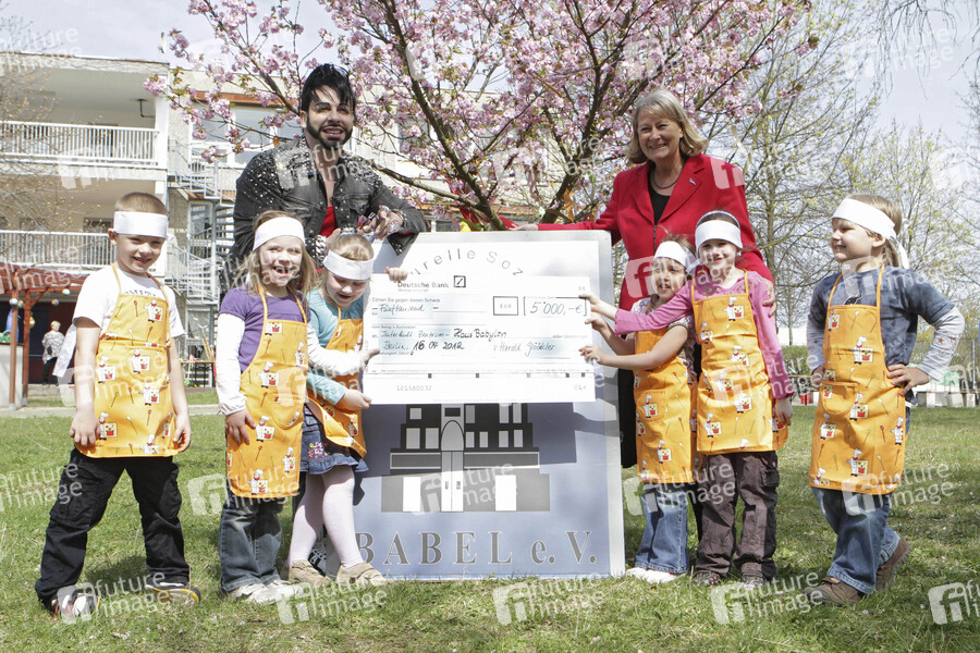 Scheckübergabe von Harald Glööckler an das Deutsche Kinderhilfswerk und den Babel e.V. in Hellersdorf, Berlin