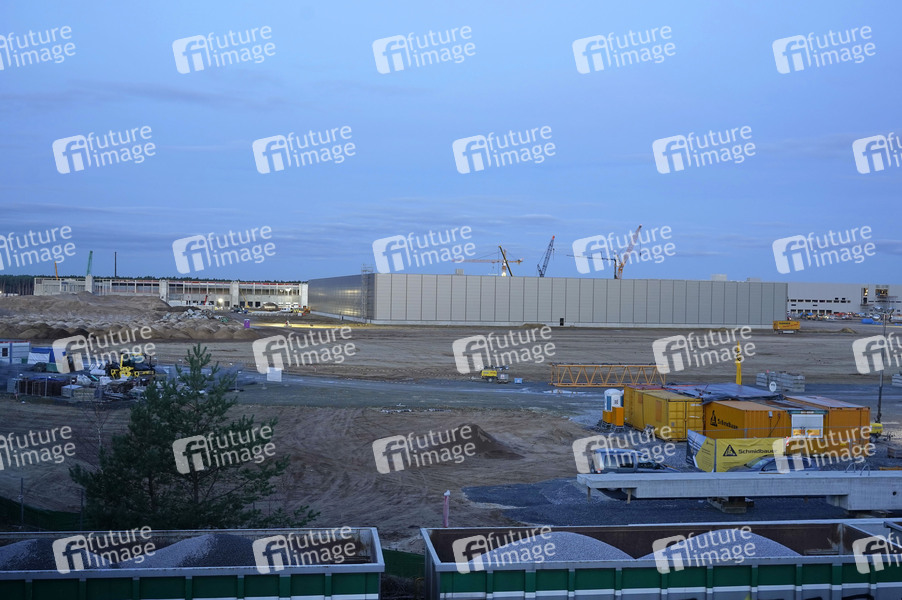 Elektroauto, Elektrofahrzeuge, PKW, Auto, Model Y, Model 3, Großfabrik, Automobilhersteller, Autobauer, Elektromobilität, umweltfreundlich, vorläufige Genehmigung, Batteriefabrik, Großprojekt, Investition, Baugenehmigung, Vorab-Genehmigung, E-Auto-Fabrik, Umwelt, Klimaschutz, Baustelle, Bauen, Baubranche, Bau-Branche, Bauarbeiten, Großbaustelle, Kran, Kräne, Baustelle, Wirtschaft, Autoproduktion
