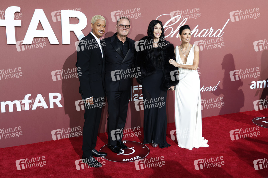 Alexander Edwards, Kevin Robert Frost, Cher und Demi Moore bei der 30. amfAR Gala Cannes im Rahmen des Festival de Cannes 2024 / 77. Internationale Filmfestspiele von Cannes im Hôtel du Cap-Eden-Roc. Antibes, 23.05.2024